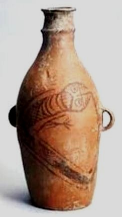 黄帝和伏羲一样被描述为人面蛇身,尾交首上,也就是和风姓族同一图腾。尾交首上包含着“始终合一,有无相生“的思想。这个思想多古老我们无法判断,但从甘肃西坪出土的这个陶瓶看来,至少有七千年的历史,而且同西亚 uroboros 自吞尾蛇相似。