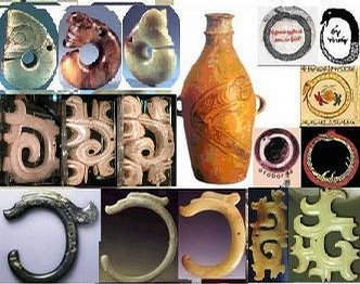 但是网格纹又同龙有关。80年代开始在内蒙古辽宁一带发现了许多新石器时代的遗迹和文物,统称为红山文化。其中最引人注目的文物是玉器,尤其是一些猪头蛇身的玉龙,有的首尾相连称为玉猪龙或兽型玦,有的首尾分开成英文字母c称c型龙。另在附近查海,兴隆洼,赵宝沟,夏家店等地又找到稍前稍后的遗迹及风格关联的文物。